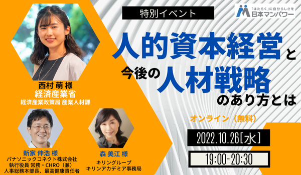 ~経済産業省 人的資本経営コンソーシアム 西村担当官 招聘~人的資本経営と今後の人材戦略のあり方とは(2022年10月26日(水)無料オンラインセミナー)
