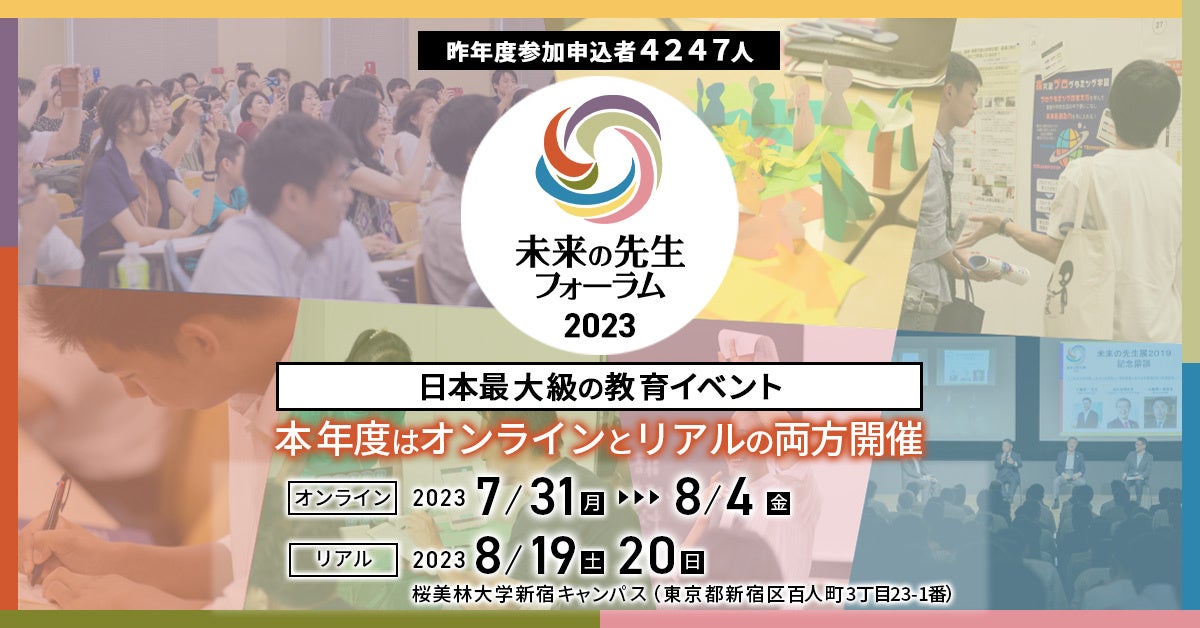 8月19日(土)、20日(日)の二日間に渡り桜美林大学新宿キャンパスにて開催される日本最大級の教育イベント「未来の先生フォーラム2023」に、リアル方式にてブース展示、講演プログラムで参加いたします。