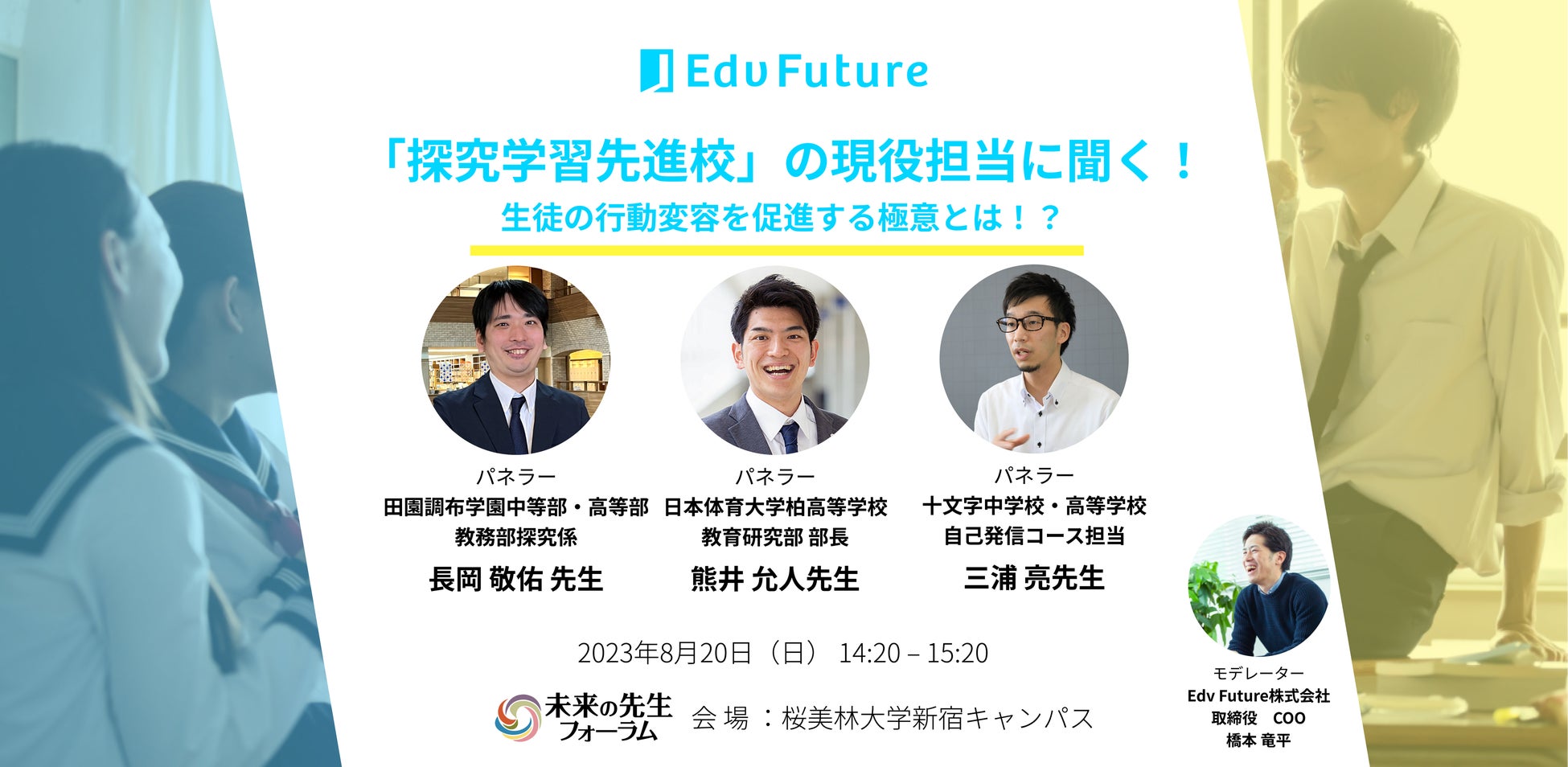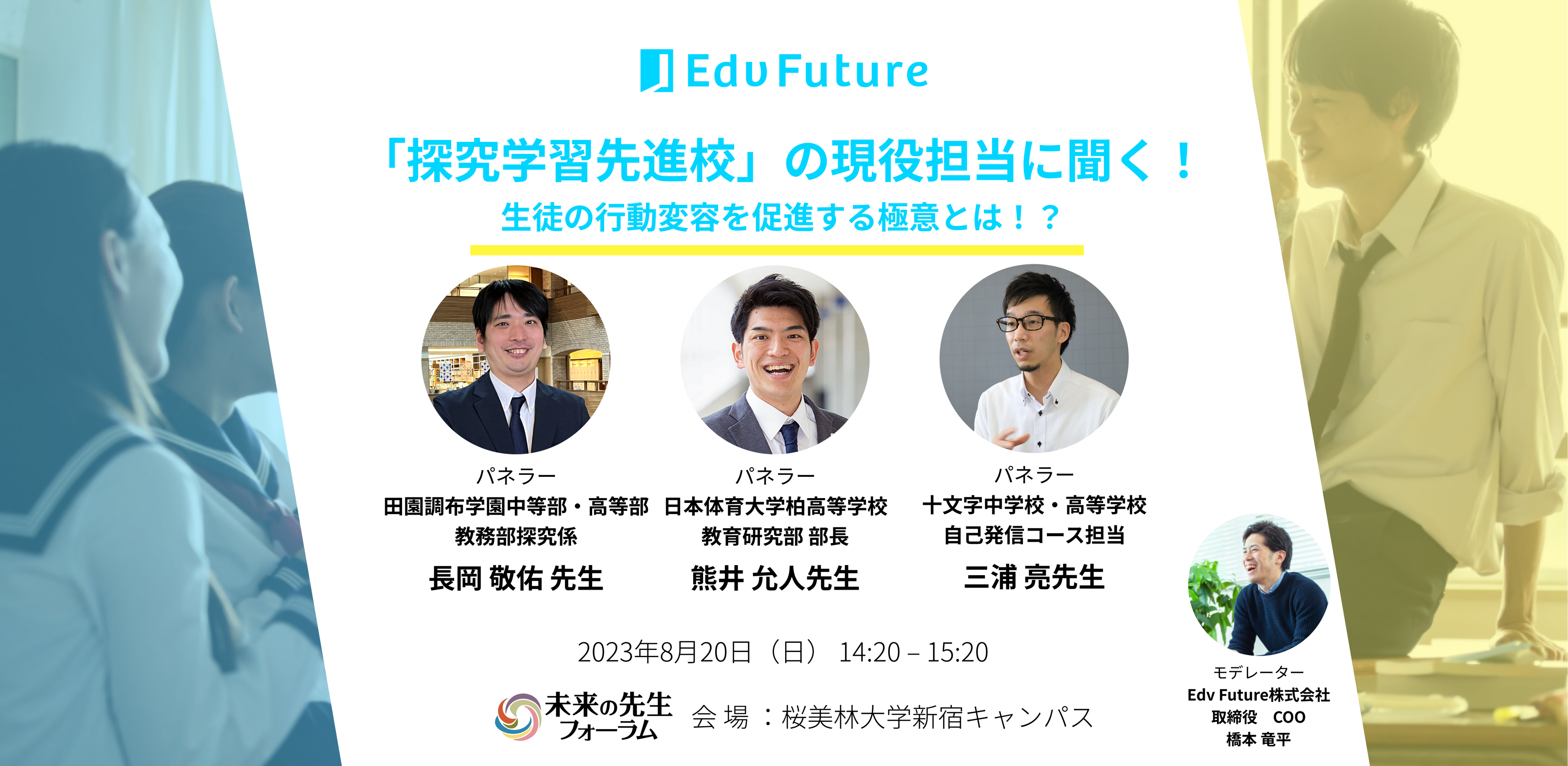 導入校の探究学習事例を8月19日・20日に開催される日本最大級の教育イベント「未来の先生フォーラム2023」にてセミナー形式でご紹介