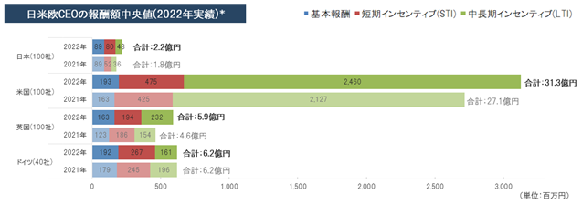 ~2022年日米欧CEO報酬調査の結果公表(報酬実績、構成比、業績評価指標の比較)~
