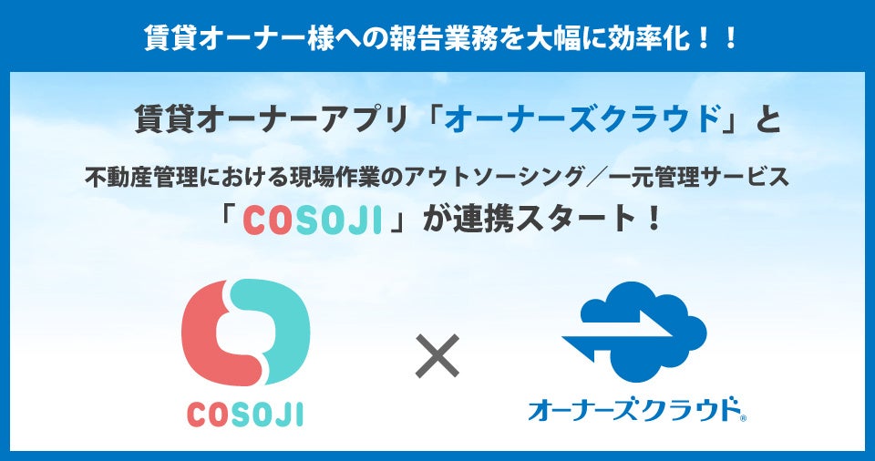 賃貸オーナーアプリ「オーナーズクラウド」と不動産現場の一元管理サービス「COSOJI」が連携スタート!