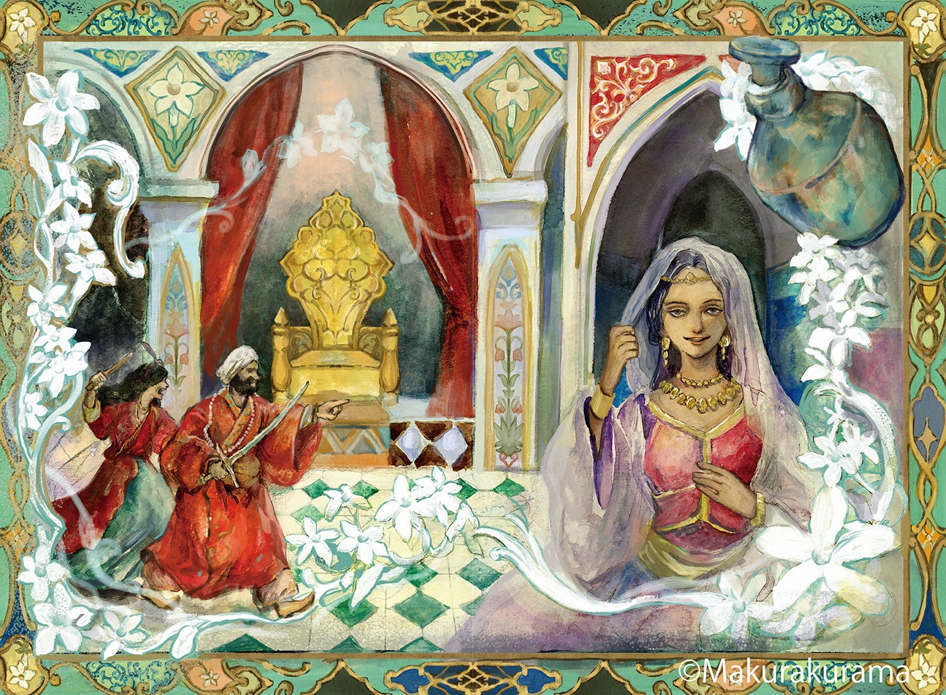 「この物語を最初に読んだ時、形のない魔法の植物園のようだと思いました。挿絵を描くにあたり、イタリア、アラビア、日本など、初めて挑戦する文化ばかりで苦戦もしましたが、知り得なかった新しい知識に触れることが出来たのも、このような機会を頂けたからこそ。廣嶋先生が紡ぐお伽草子と共に、イラストを楽しんで頂けたらと思います」