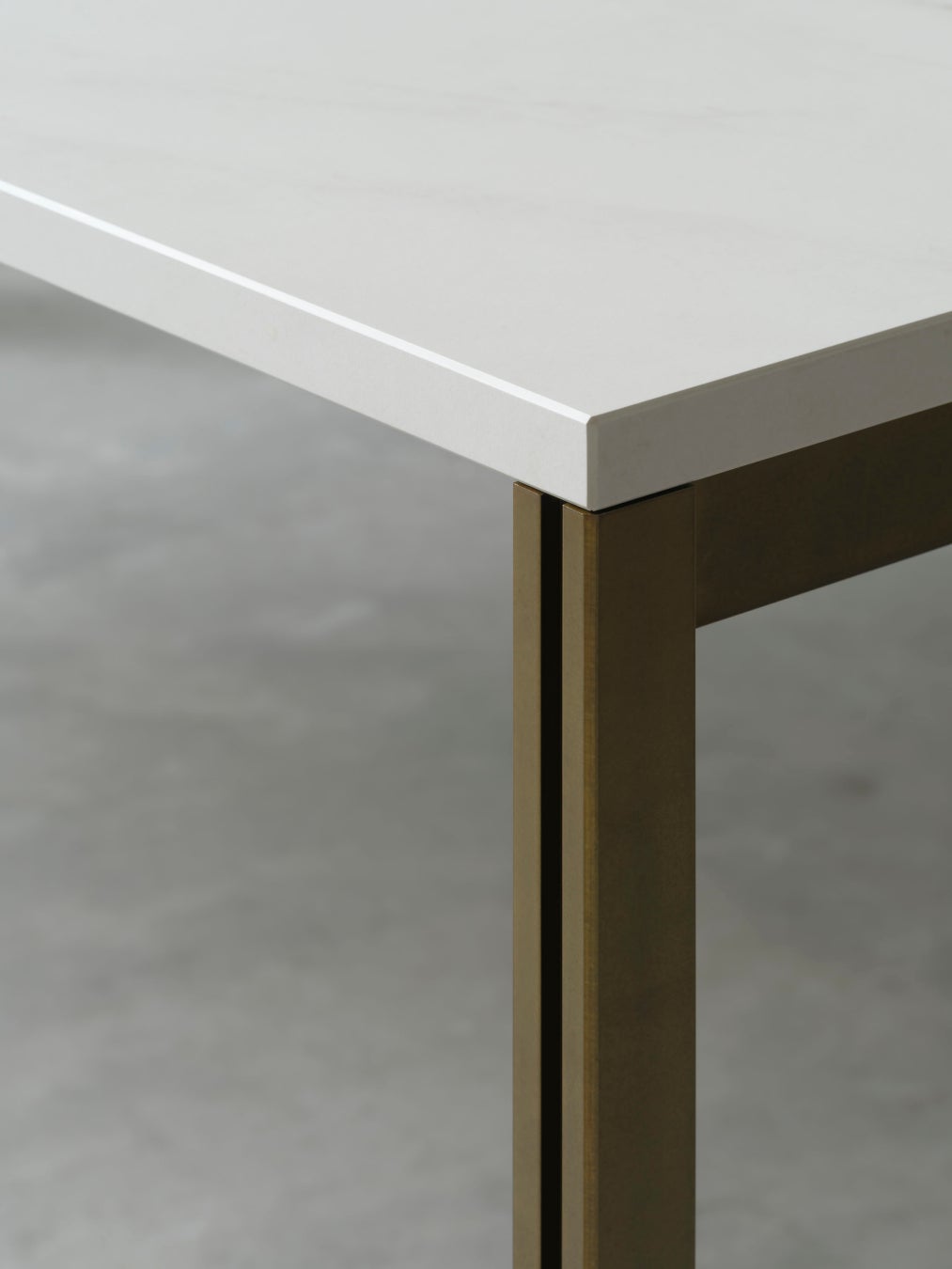 16mmの厚みをもつ存在感のある天板と、古美色のスティール脚が織りなす構成は、静けさの中に力強さを感じさせます。サイズは空間に合わせて選べるセミオーダー仕様。厳選された素材と洗練された構造美が生み出す佇まいは、あらゆる空間に気品と調和をもたらします。