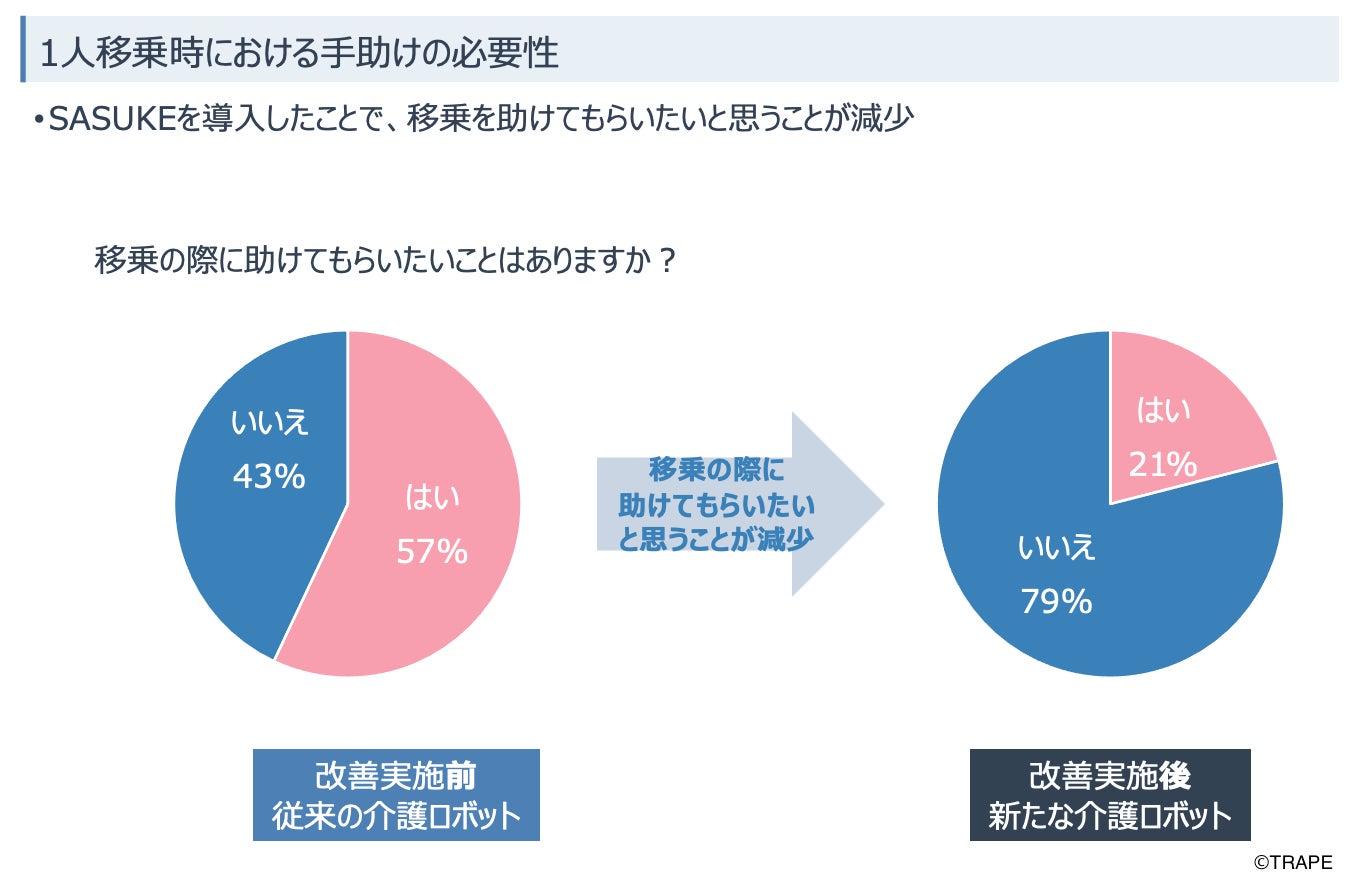 利用者の転倒リスクが下がり、1人の職員でも安全に移乗介助を行うことができるようになった