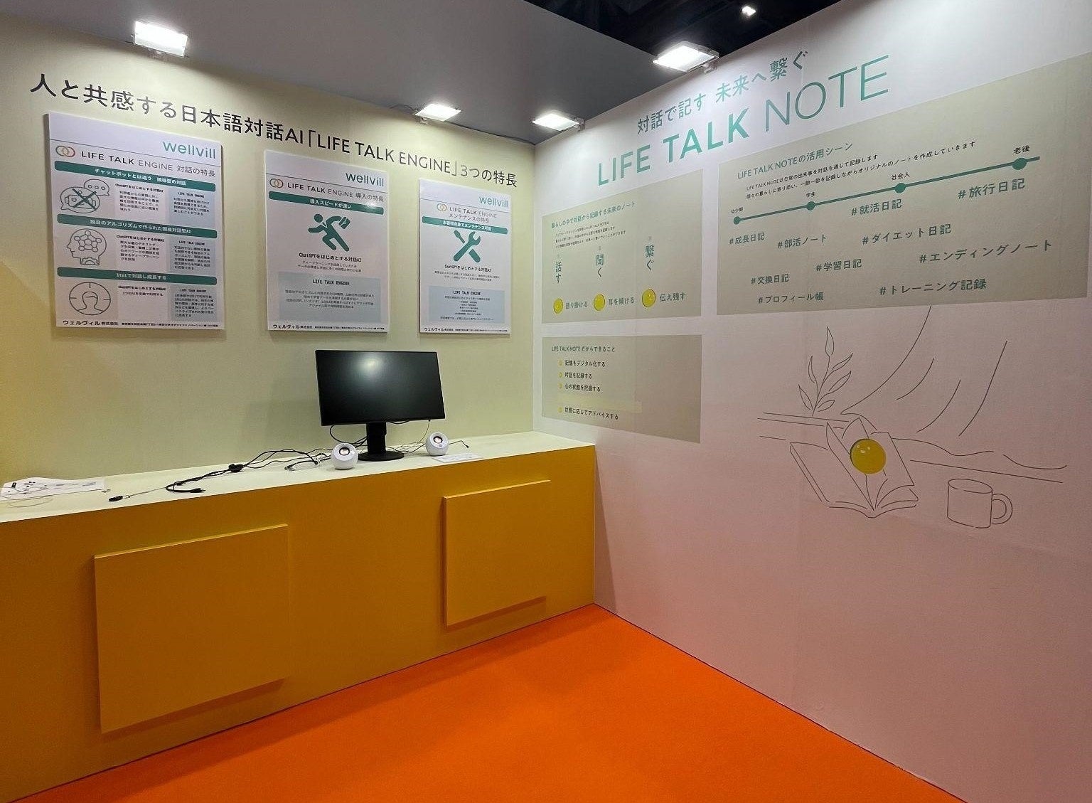 LIFE TALK ENGINEを活用した受付・接客等の業務DX事例や、対話の中から必要な情報を記録していく未来型ノートの体験をご用意しました。多種多様な業界の方に興味を持っていただきました。