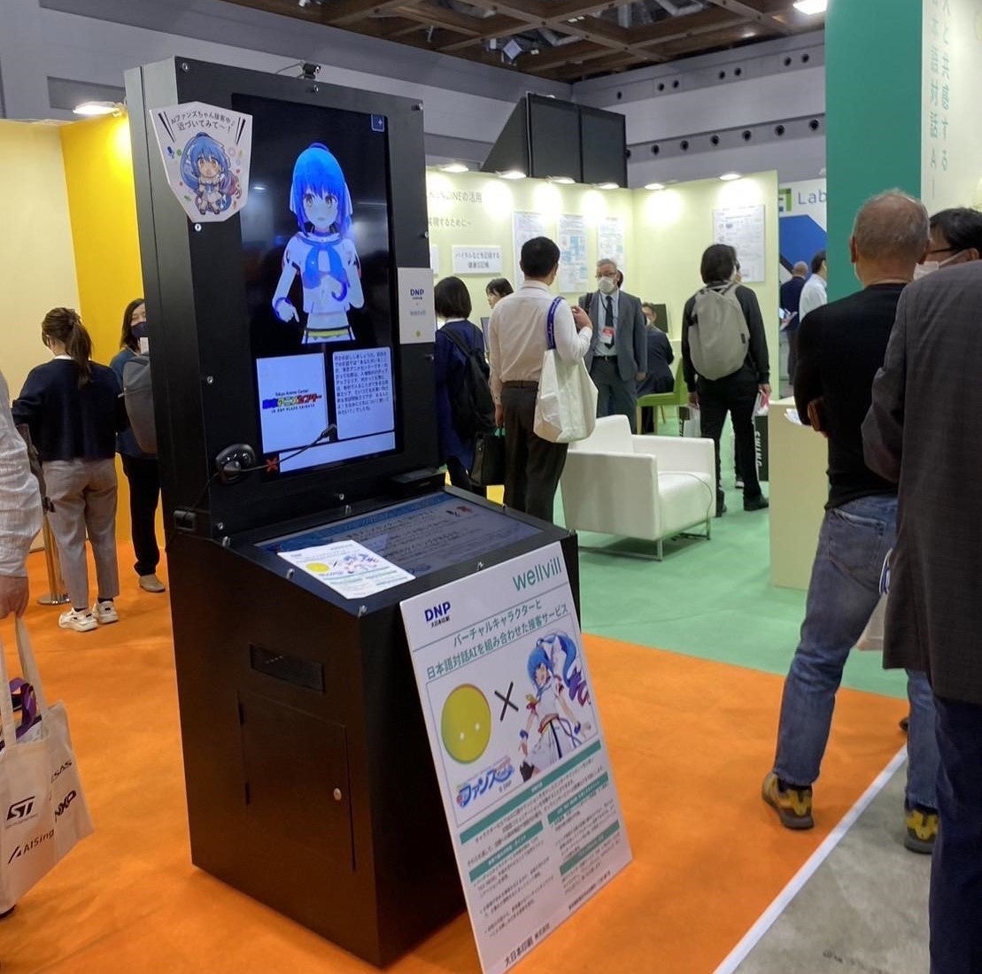 バーチャルキャラクターによる接客サービスの体験をご用意しました。滑らかに動くバーチャルキャラクターが来場者に話しかける本展示は、体験者が絶えないほど大好評でした。