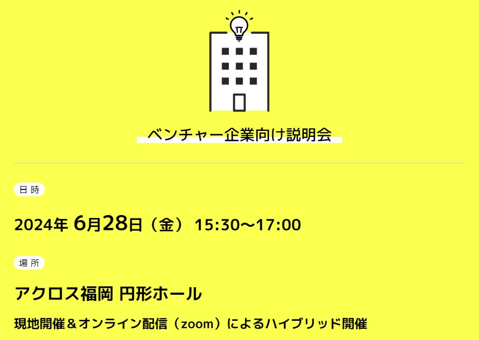 ~ベンチャー企業向け説明会(現地/オンライン開催)を6月28日(金)に開催~