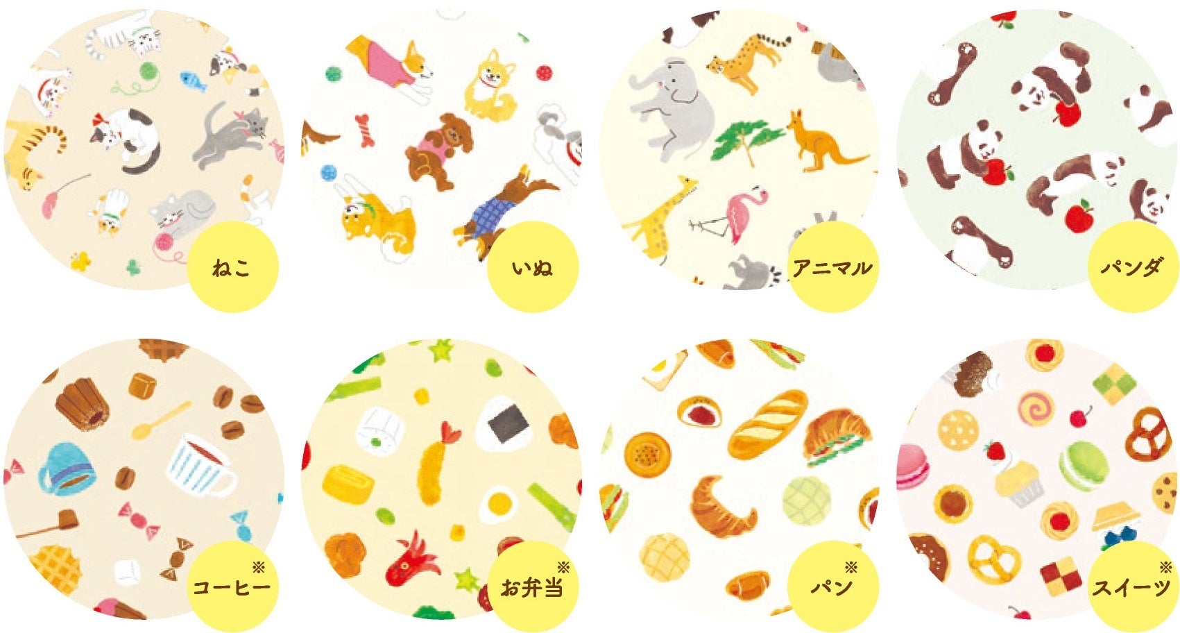人気の動物柄からユニークな食べ物柄まで。ほどよくデフォルメされた可愛らしいタッチで、すべてのアートを描き起こしました。