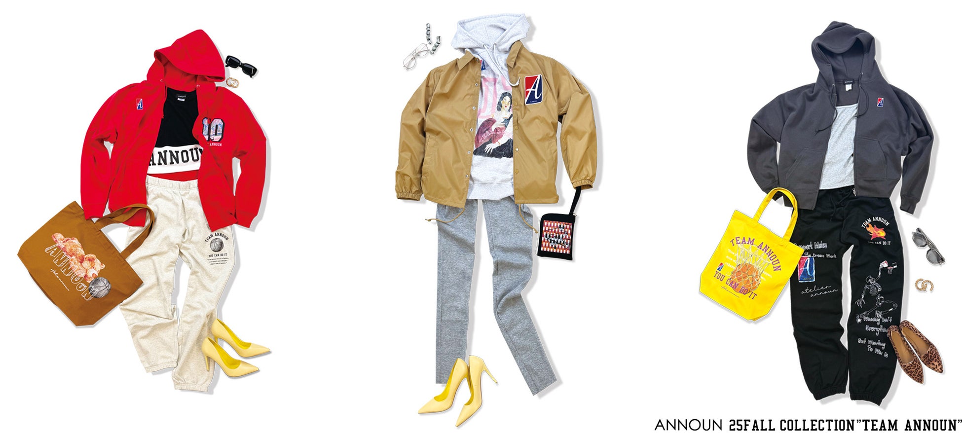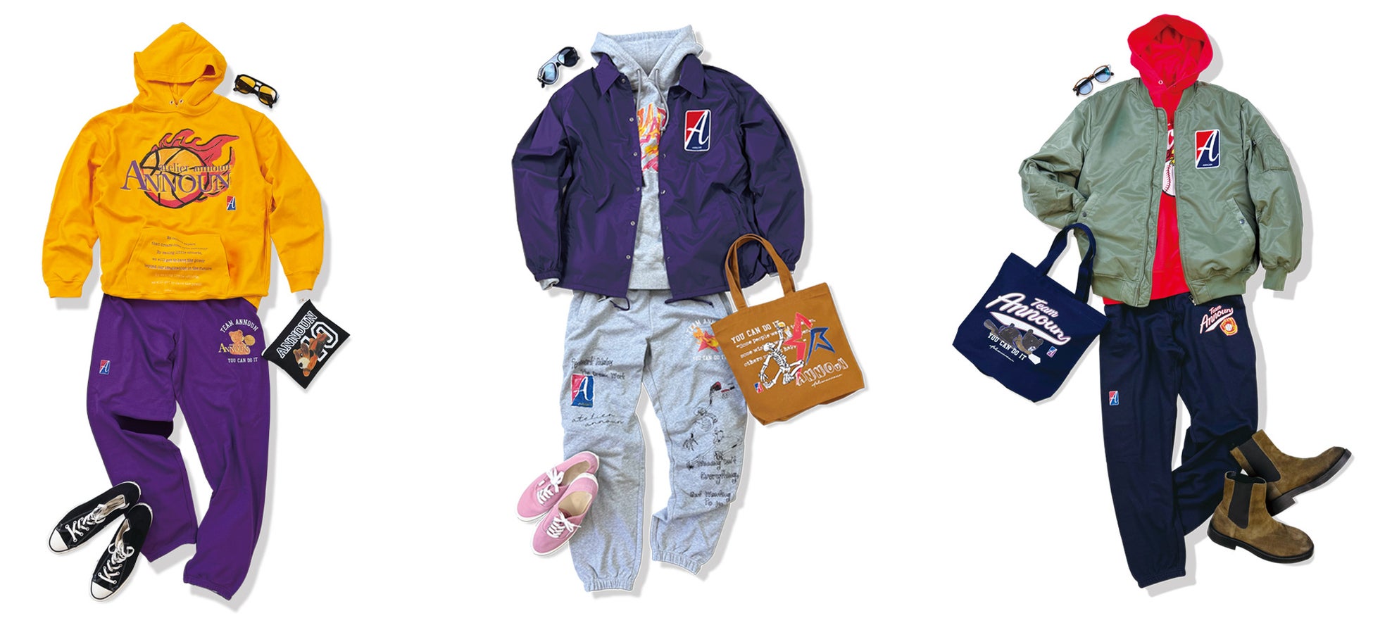 “TEAM ANNOUN”をテーマに、スポーツチームをモチーフにした原画を「アトリエ・アンノウン」にて制作、日々テーマに沿ってそれぞれアーティストたちがデザインの元となる原画制作に取り組み、数百枚の中から厳選し出来上がった作品になります。バスケットボール、サッカー、野球をイメージした架空のスポーツチーム”TEAM ANNOUN”を表現したコレクションになります。