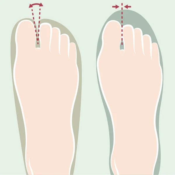 足袋シューズに足を通すと自然な形に指が開き、アーチが整うことで足底筋膜が刺激され、足裏本来のクッション性回復に繋がります。外反母趾の進行防止にも効果的です。