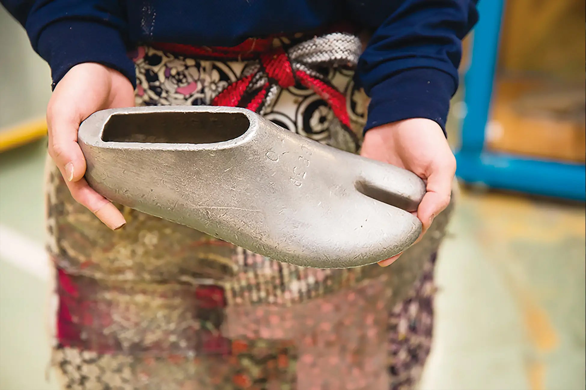 普通の靴のつま先を割るだけでは、足指にとって快適な空間は確保できません。私達のTABIシューズは100年の歴史で培ってきた、長時間履いてもつま先が痛くならない地下足袋専用の木型(ラスト)をベースに作られ、指先に縫い目等が当たらないよう1枚の布で立体的で快適な空間に仕上げています。