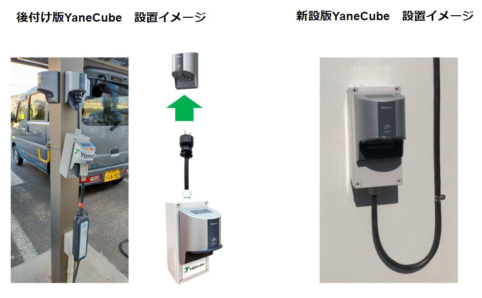 既設の充電コンセントに設置する「後付版YaneCube」と、充電器を新設するお客さま向けの「新設版YaneCube」の2種類のラインナップで販売を開始し、お客さまのニーズにお応えします。