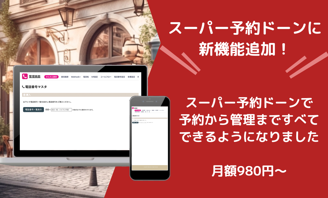 舗の情報を最適化したり、「地名+目的」で検索をしたときに表示順位を向上させるツール「検索ドーン」やインスタ集客「インスタドーン」などを販売するケイビーカンパニー株式会社(代表取締役社長:北島万乘)は、2022年8月1日にリリースした、最先端の自動電話対応ツール「スーパー予約ドーン」に新機能が追加されました。