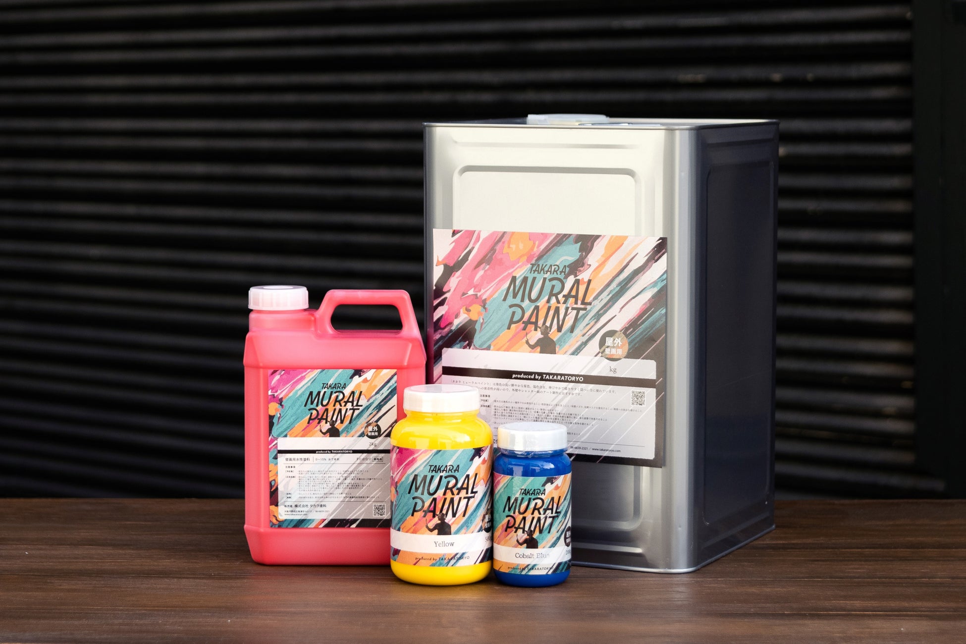 「シャッターに描く際の最適な塗料を知りたい」「発色の良い原色が欲しい」「隠ぺい力が高い画材が欲しい」「普通の画材では高額すぎる」という多くのアーティストからの声を受け、壁画専用塗料「タカラ ミューラルペイント」が誕生しました。