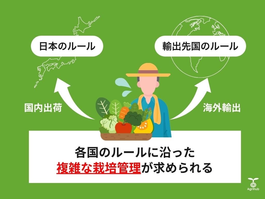 この問題は、日本の農薬使用基準と輸出先国の基準が異なるため、生産者は国内基準に加えて、輸出先国のルールごとに対応する必要があり、従来の手作業による管理では対応できず、日本の農産物をそのまま海外に出荷していたことが原因です。