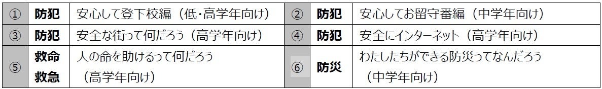 授業内容は、子どもたちを犯罪・災害の被害から守るための「防犯・防災授業」と、心肺蘇生法の体験を通して命の尊さを学ぶ「救急救命授業」で、体験や討論、発表等を通じて深い学びを促す“アクティブ・ラーニング型”の授業となっており、各学年に対応した指導案を用意しています。