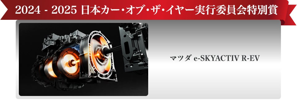 マツダ独自の技術として世界で初めて実用化に成功したロータリーエンジン。環境問題を理由に命脈を閉じたかに見えたこの日本固有の技術資産を、発電機として用いる新しいパワーユニットe-SKYACTIV R-EVとして復活させ、未来に向けさらに進化させる道筋を拓いたことを評価した。