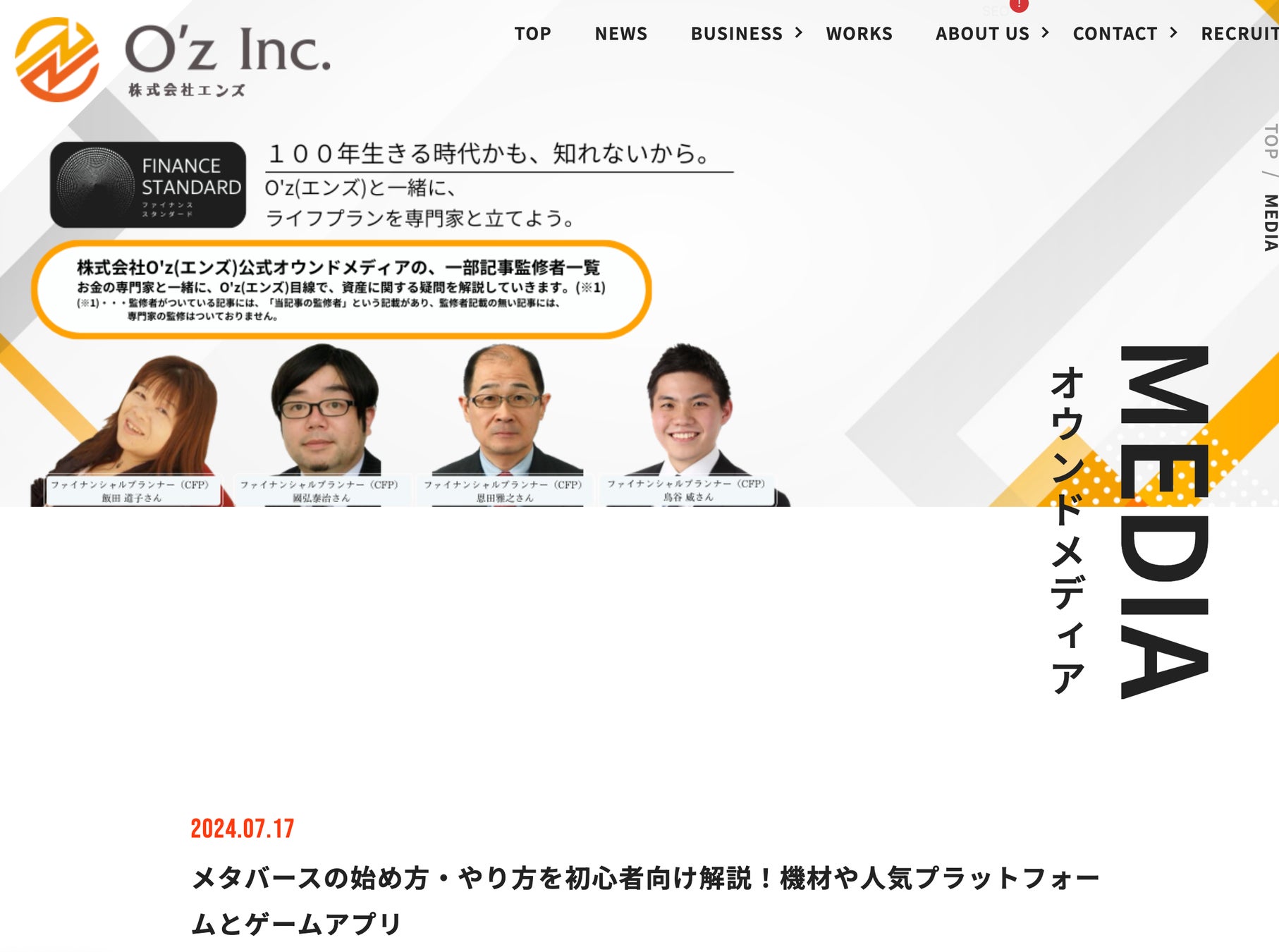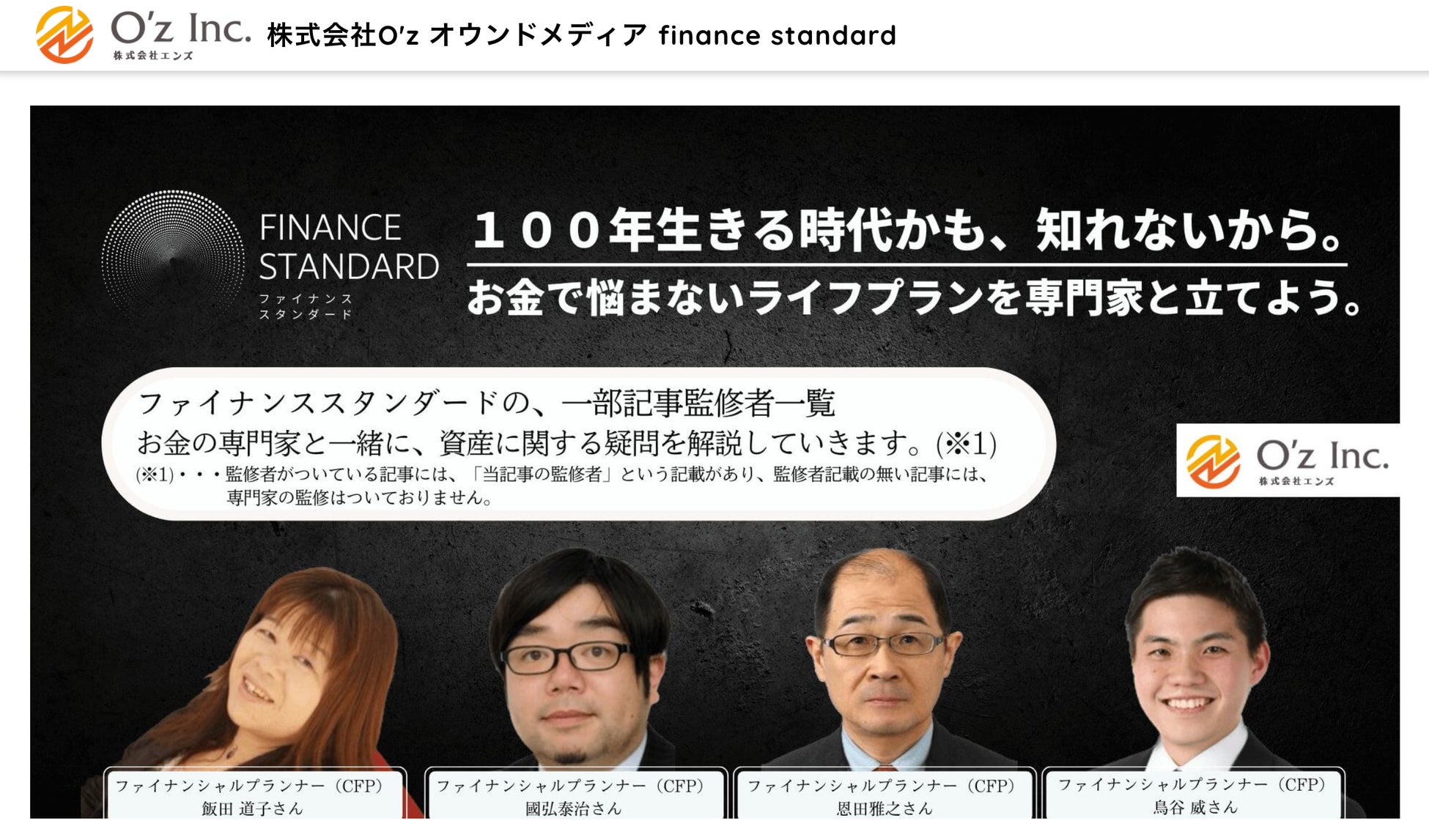 株式会社O'z(以下、「当社」といいます。)が運営する、公式運営オウンドメディア、「finance standard」は、人生100年時代に向け、長寿化がもたらす働き方や生き方の変化が予測される現代における、「これからのお金の使い方、貯め方、ライフプラン」をテーマに、当社がお金の専門家と共に、解説・啓蒙を行うWebコンテンツです。