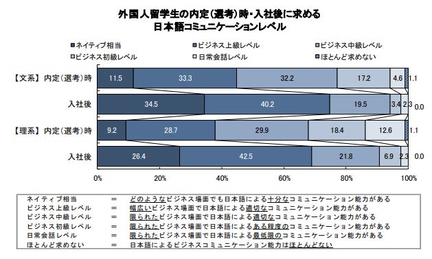 また、日本における外国人材採用では、多くの企業が日本語での高度なコミュニケーション力を求めています。(参考資料1)