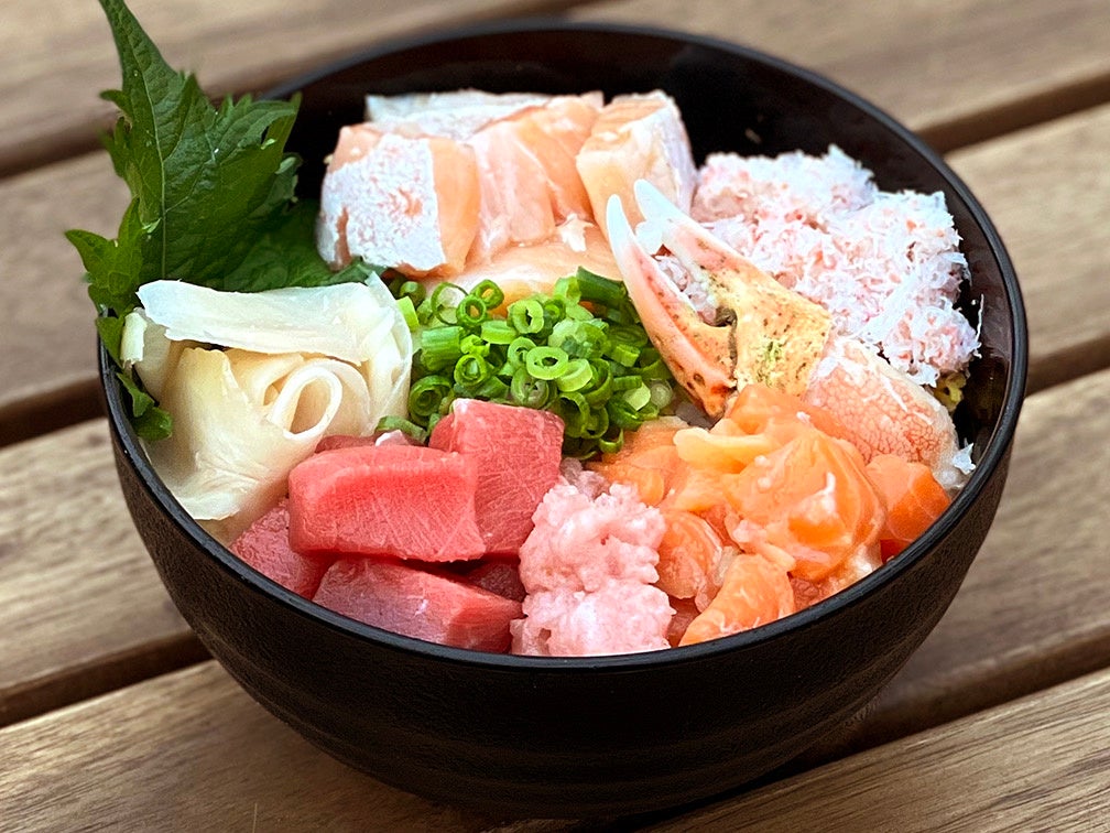 マグロ、サーモン、カニなど北海道名産の魚介を丼に詰め込んだまさに北海道づくし。