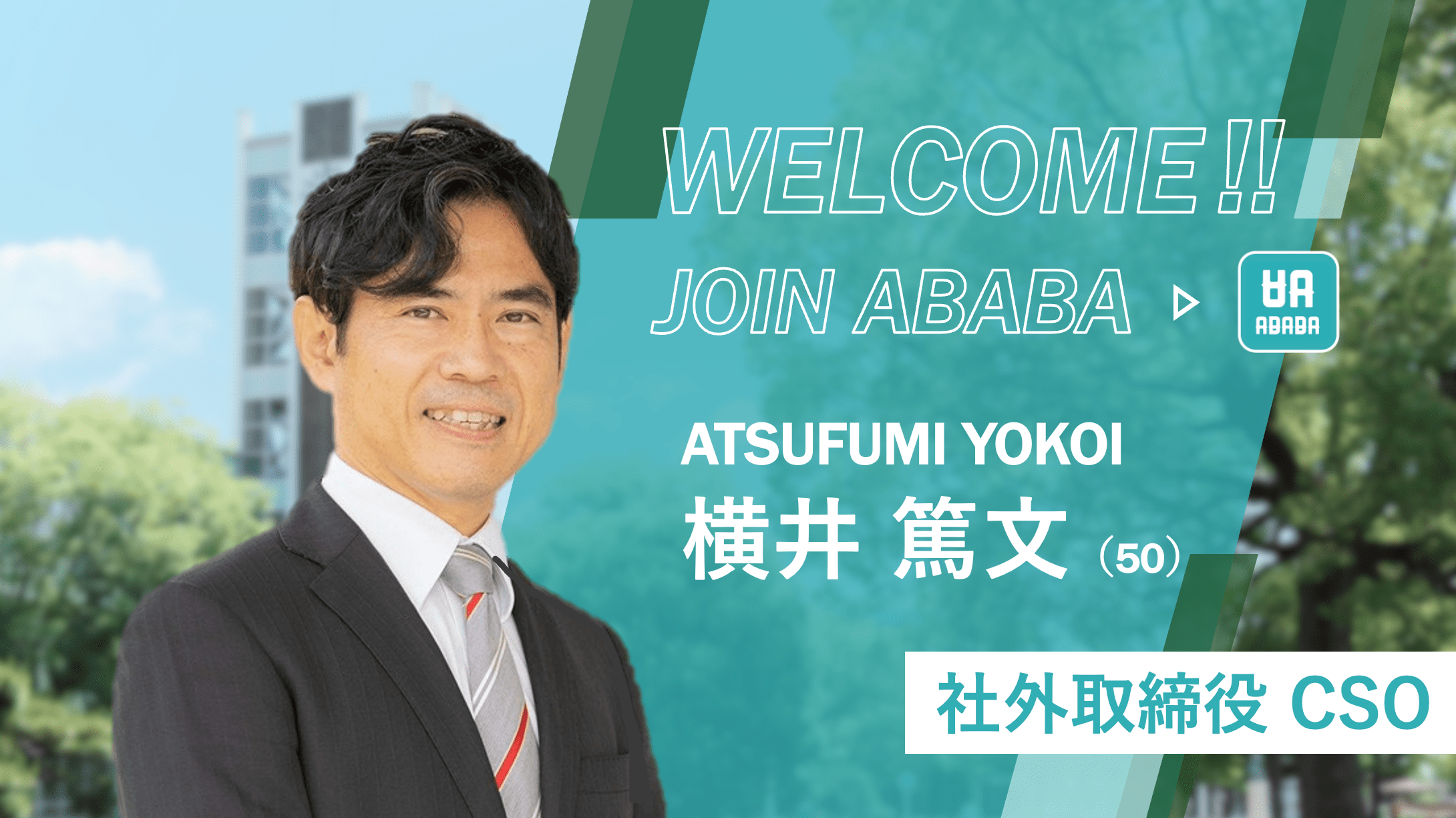 就職活動における最終面接でのお祈りメール(不採用通知)を推薦に変え、「最終面接まで進んだ学生を企業間で推薦し採用もできるプラットフォーム」ABABAを提供する株式会社ABABA(本社:大阪府吹田市、代表取締役:久保駿貴)は経営体制及びガバナンス強化と企業価値向上を目的として、社外取締役CSO(Chief Sustainability Officer)に横井篤文岡山大学上席副学長(特命(グローバル・エンゲージメント戦略)担当)の就任を発表した。(着任日は4月1日)