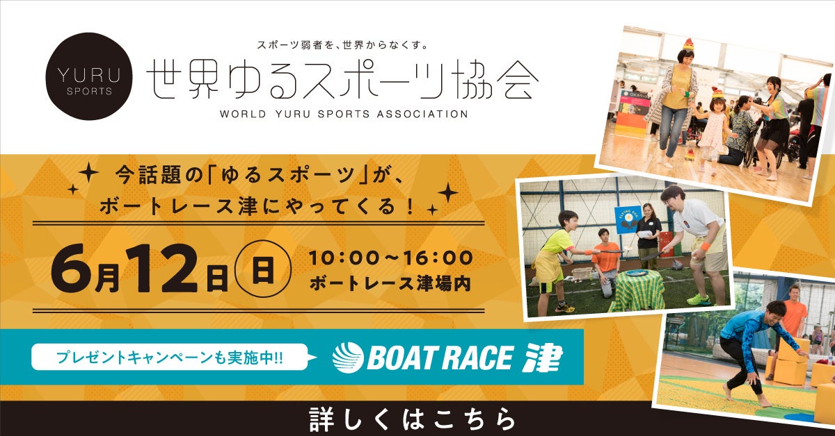「ゆるスポーツ」は、年齢や性別、運動神経に関わらず、だれもが楽しめる新しいスポーツ!「勝ったら嬉しい、負けても楽しい」ゆるスポーツは、プレイヤーも観客もその場にいる人全員が、思わず笑ってしまうような楽しい世界を演出します!当日は、5競技のゆるスポーツが体験できます。ぜひこの機会に、ゆるスポーツを体験しにボートレース津へお立ち寄りください。