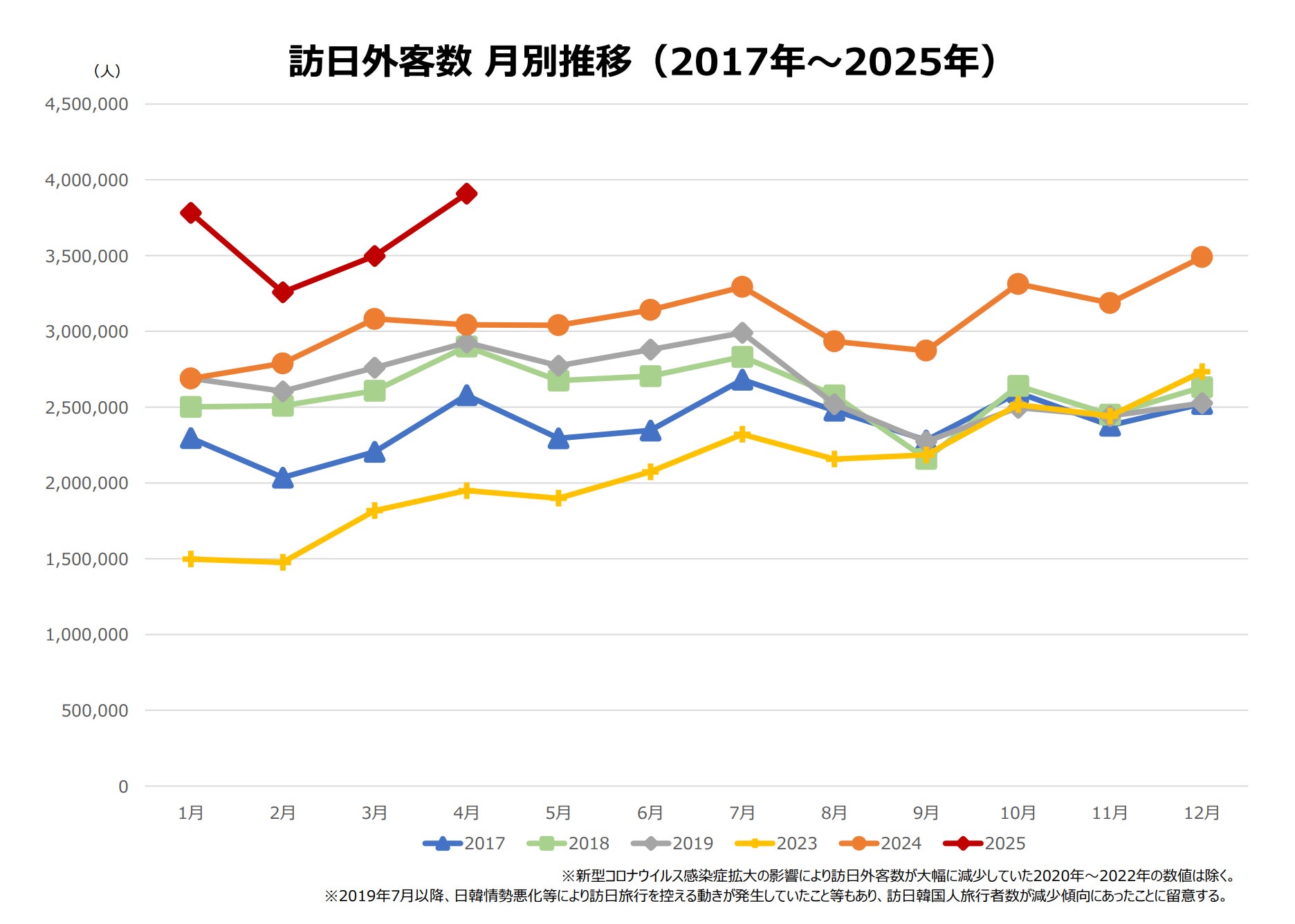 2025年4月 訪日外客数が“単月過去最高”記録!まだまだ伸びるインバウンド市場
