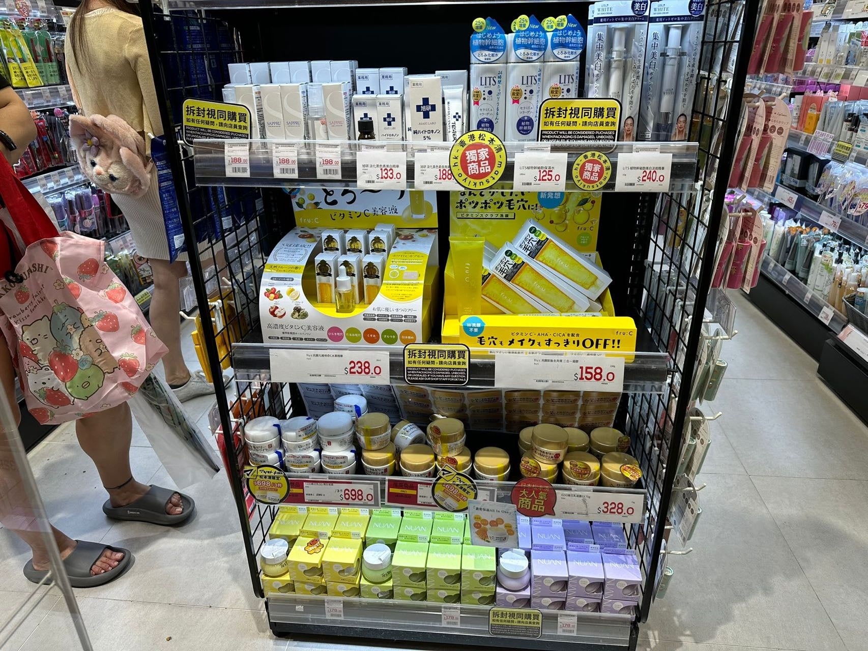 Fru:Cシリーズは、インバウンド需要の高い主要店舗で取り扱い中。実際のインバウンド店舗の売り場を見てみると、「お土産にまとめ買いしたい」という訪日外国人のニーズに応えて、幅広く展開されています。