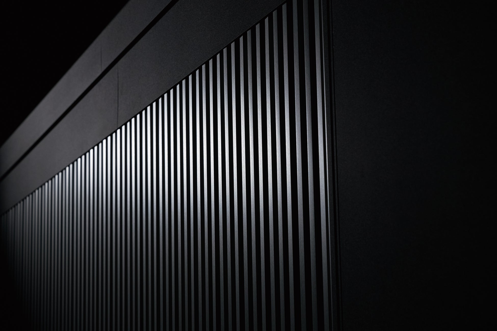 部材間の継ぎ目や凹凸感を極力なくし、フラットで一体感のあるデザイン美を実現しました。固定ボルトも目立たないように配置するなど細部にまで配慮しています。特殊塗料のマット調鋼板を採用した柱や軒などの化粧部材は高級感のある質感と意匠性に加え、高い耐候性と耐傷付き性を兼ね備えています。