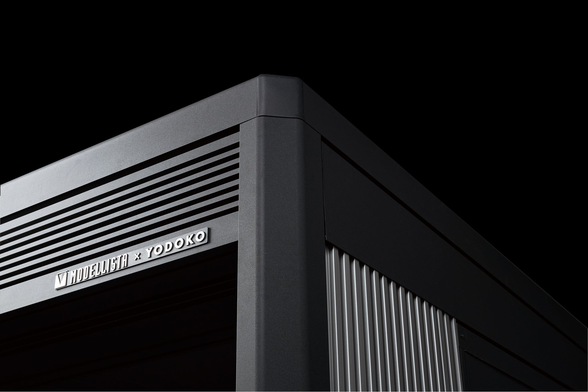 「ラヴィージュⅢ MODELLISTA×YODOKO」は、「ライフスタイルを拡張する“多機能空間”として新たなガレージライフの可能性を提案する」をコンセプトに「ラヴィージュⅢ」の利便性と耐久性に「MODELLISTA」のデザインエッセンスを加えた特別仕様のガレージです。愛車を格納する「箱」としてだけでなく、ガレージそのものを所有する満足感と趣味を楽しむ空間として高揚感を高めるデザイン性や機能性にこだわって開発しました。