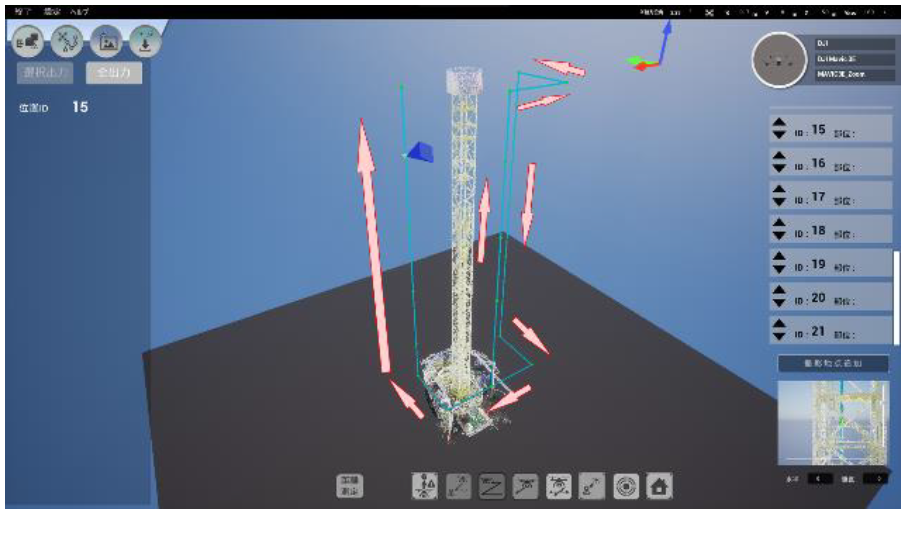 ・「ドローンスナップ」に「スペースショット」三次元点群データを取り込み飛行ルート設定を行う画面