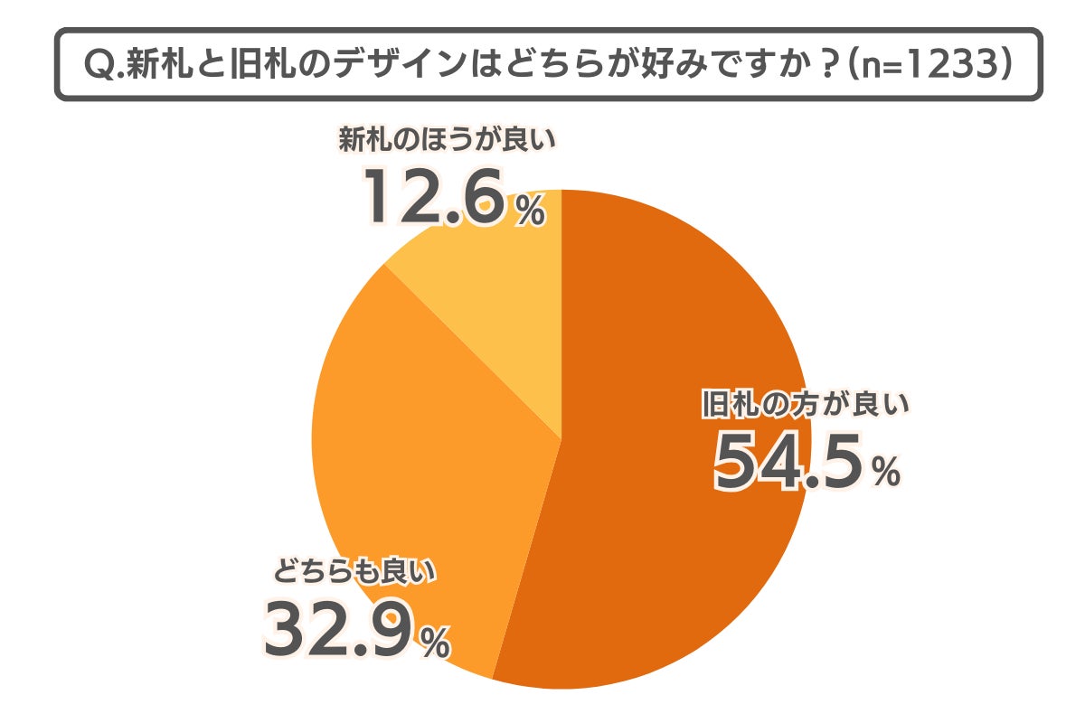 新札の方が良いと回答した人は12.6%、旧札の方が良いとコメントした人は54.5%でした。