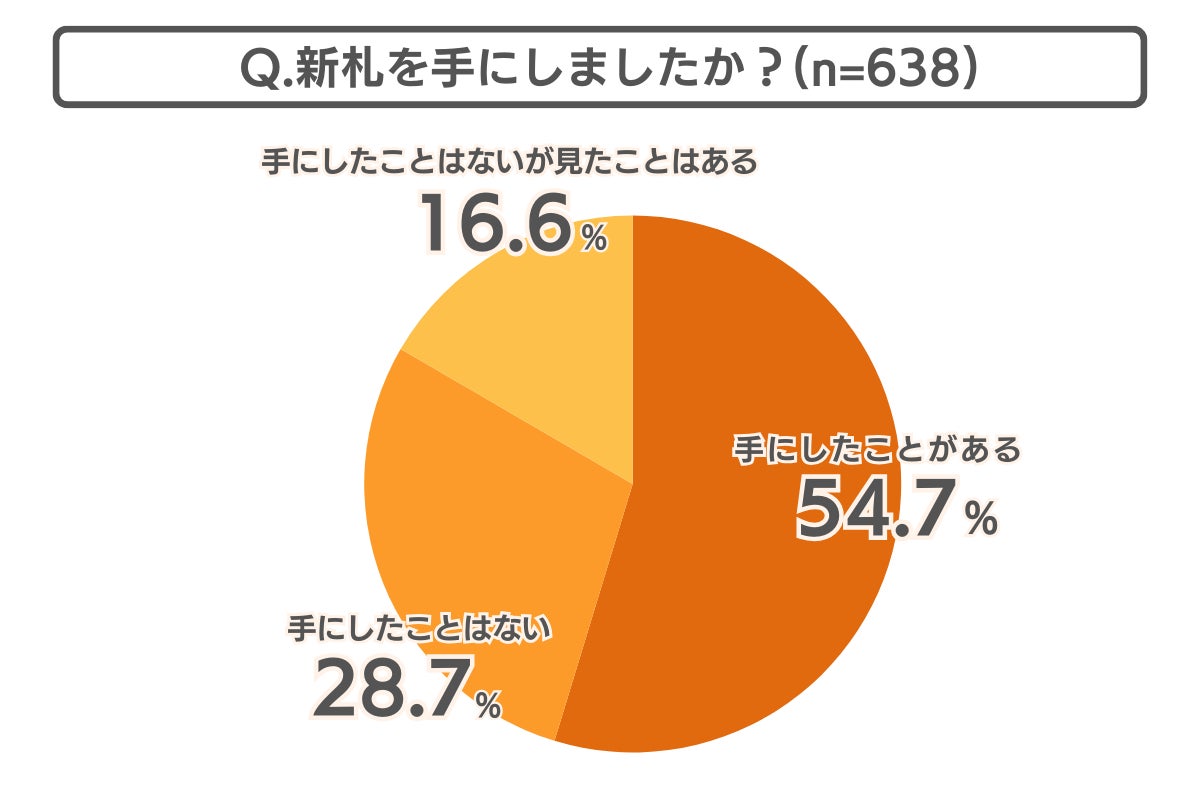 新札を手にしたことがあると回答した人は54.7%と半数程度の人が既に新札を手にしていることがわかります。