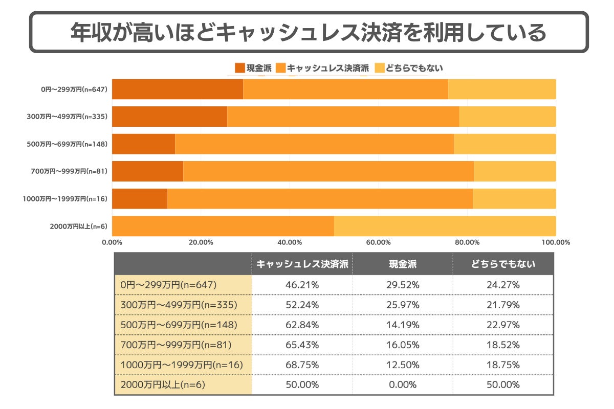 年収が高くなるほどキャッシュレス決済派の比率が増えています。