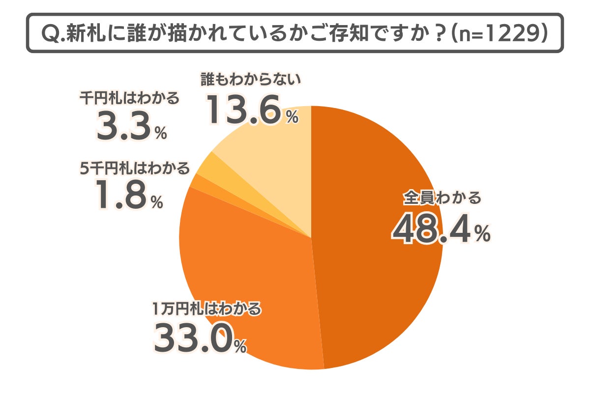 13.6%の人は誰もわからないと答えていて、1万円札のみわかると答えた人は32.6%でした。