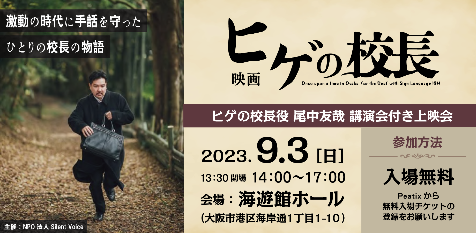 また尾中はろう児・難聴児への教育事業を展開するNPO法人Silent Voiceの代表理事であり、上映会のあと映画製作の裏話から、髙橋潔校長に感じる想いを講演会にてお話します。