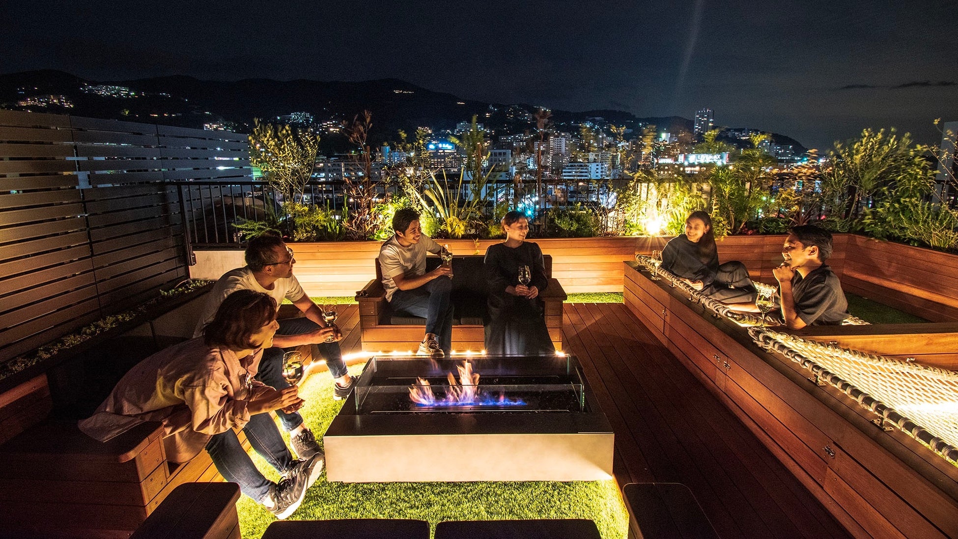 地下1階から2階の共用エリアには熱海の天然温泉を使った大浴場に加え、各種ドリンクを無料で提供するフリーフロードリンクサービス付きのテラス併設ラウンジや、ワークスペースなどの設備も充実。ハンモックとファイヤーピットを設置したルーフトップテラスでは、ドリンクを味わいながら開放感あふれる時間をお過ごしいただけます。