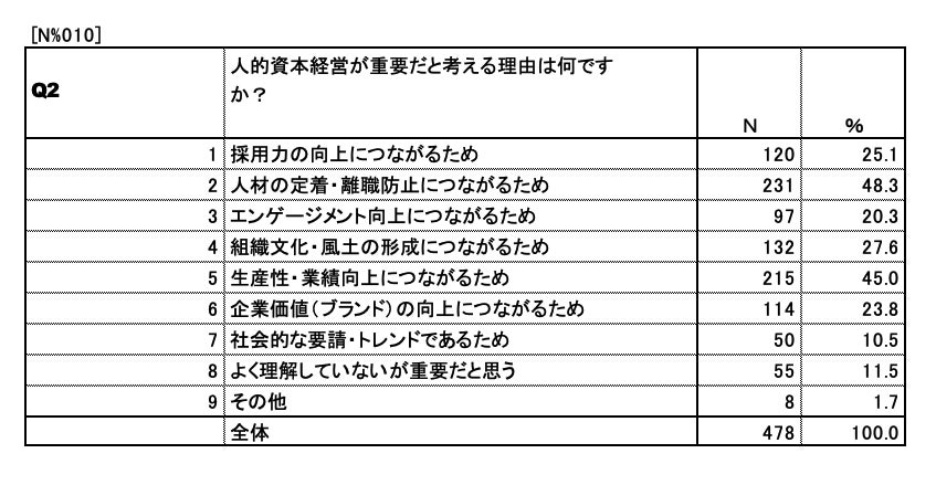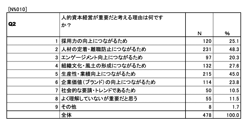 これらの結果は、経済産業省をはじめとする各種指針において示されている人的資本経営の目的とも重なっており、多くの経営者がその意義を正しく理解していることを示しています。
