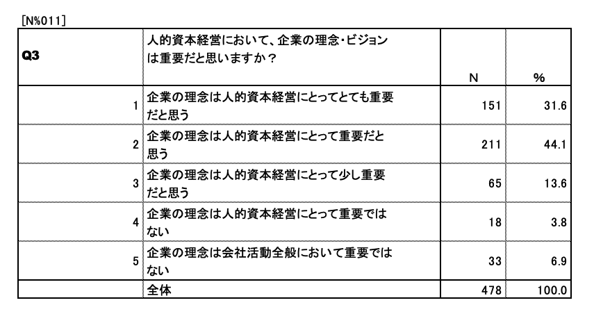 企業理念は、単なるスローガンではなく、組織として何を目指すのか、どのような価値観を大切にするのかを示す土台です。人的資本経営を進めるうえでも、その土台が必要であるという認識は、すでに広く共有されているようです。