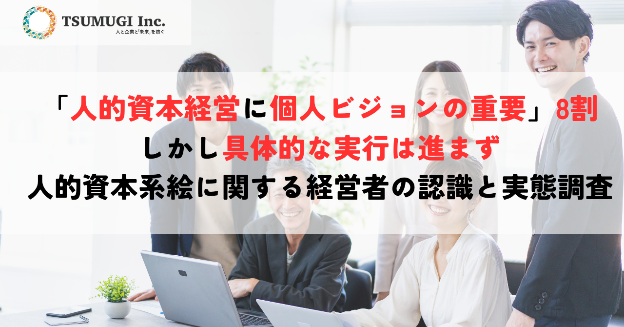 人事コンサルティングや広報支援といったサービスを通して企業様が“いい会社”となるサポートを行っている、つむぎ株式会社(所在地:東京都品川区、代表取締役:前田亮)はこのたび、経営者・役員を対象に「人的資本経営に関する意識調査」を実施しました。