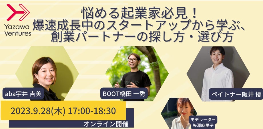 オンラインにて『悩める起業家必見! 爆速成長中のスタートアップから学ぶ、創業パートナーの探し方・選び方』を9/28に開催