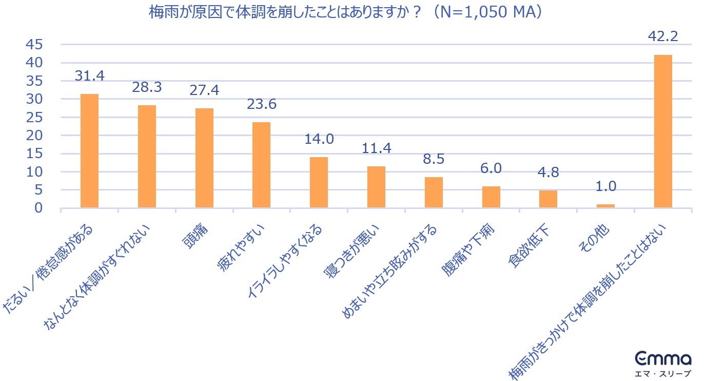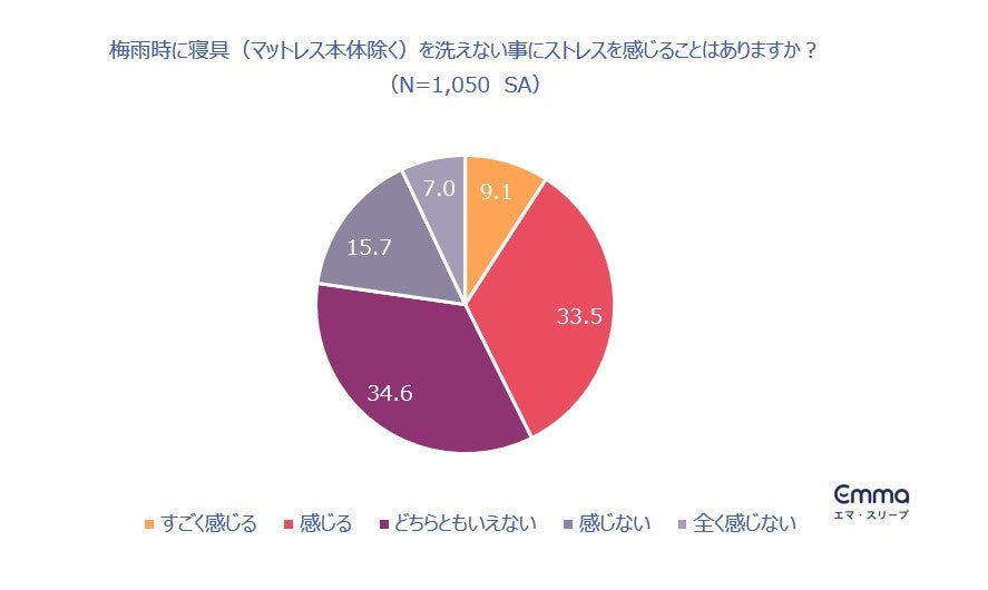 睡眠に関わる製品およびサービスを提供するスリープテック・ブランドEmma Sleep Japan合同会社(本社:東京都港区、代表:マヌエル・ミュラー、以下エマ・スリープ)は、「梅雨時の睡眠と寝具に関する意識調査」を、全国の20~59歳の男女1,050人を対象にインターネットで実施しました。