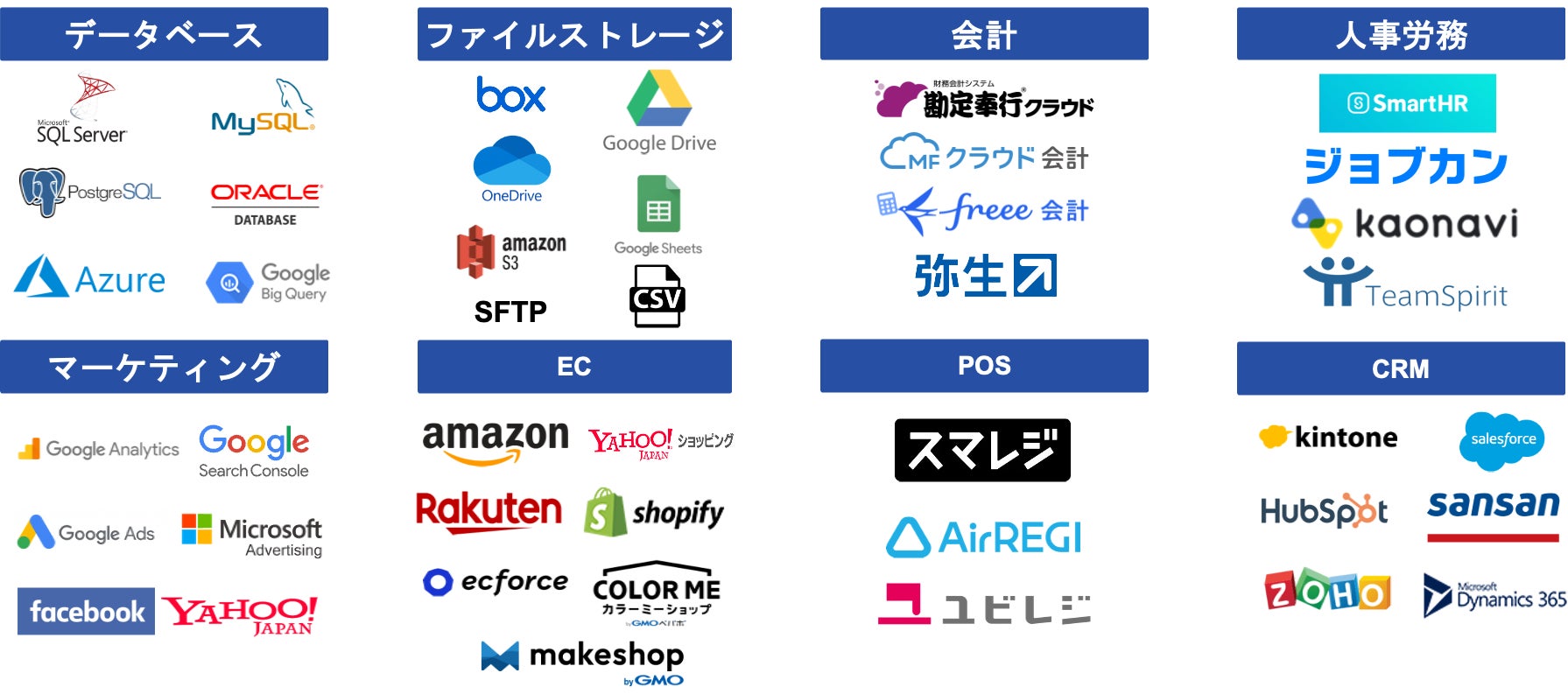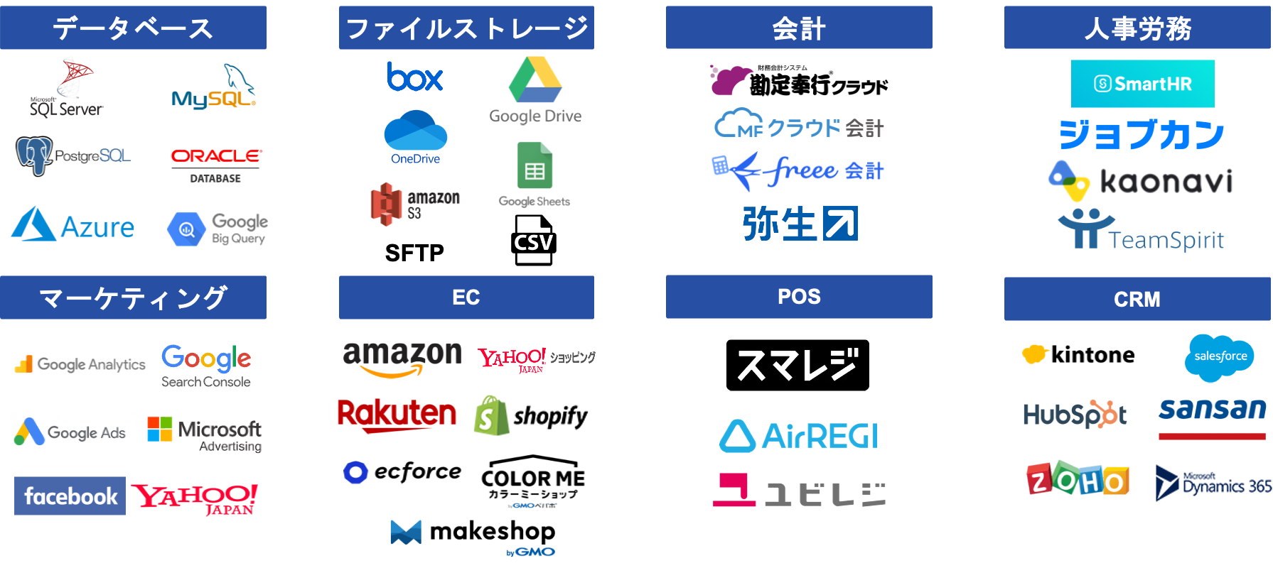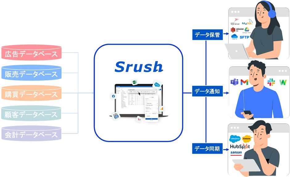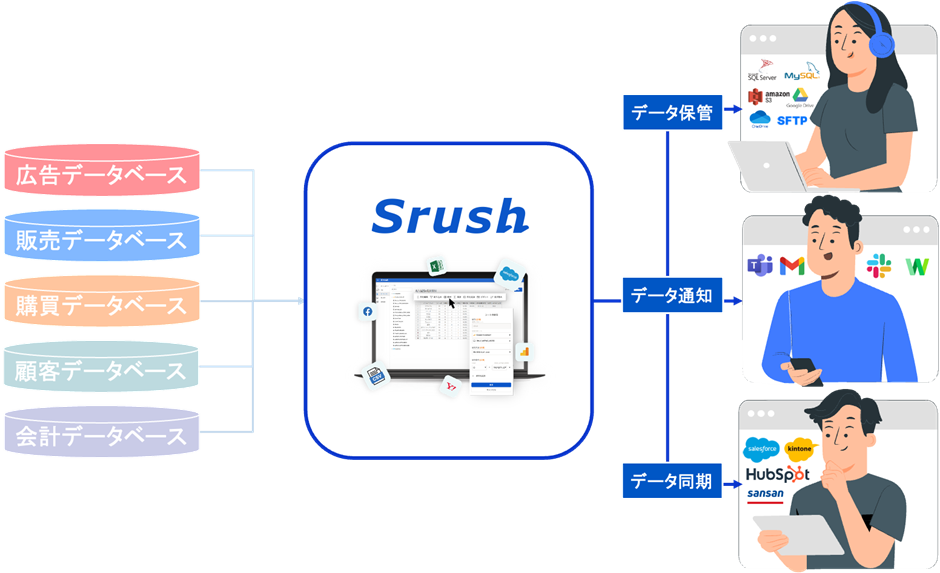 *Srushデータ連携先一部抜粋、連携先一覧はこちら:https://www.srush.co.jp/connectors