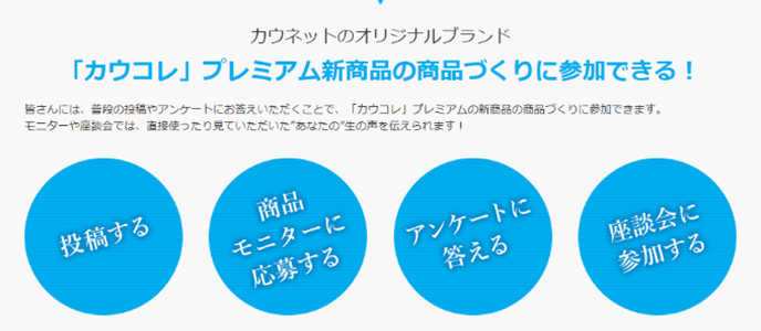 ○サービス概要:「カウコレ」の新商品の商品づくりに参加できるコミュニティサイト。