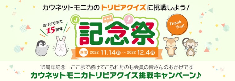 「カウネットモニカ」サービス開始から15年15周年記念キャンペーンを実施