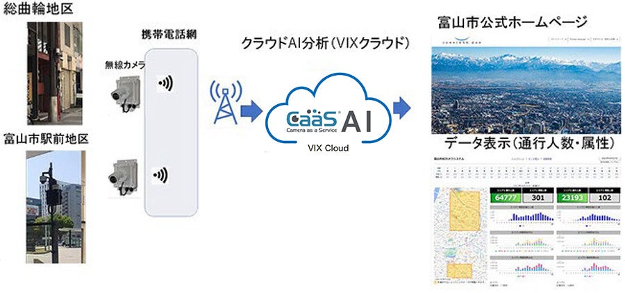 富山市AIカメラを用いた人流観測事業に、ハイテクインターのAIカメラおよびVIXクラウドを採用