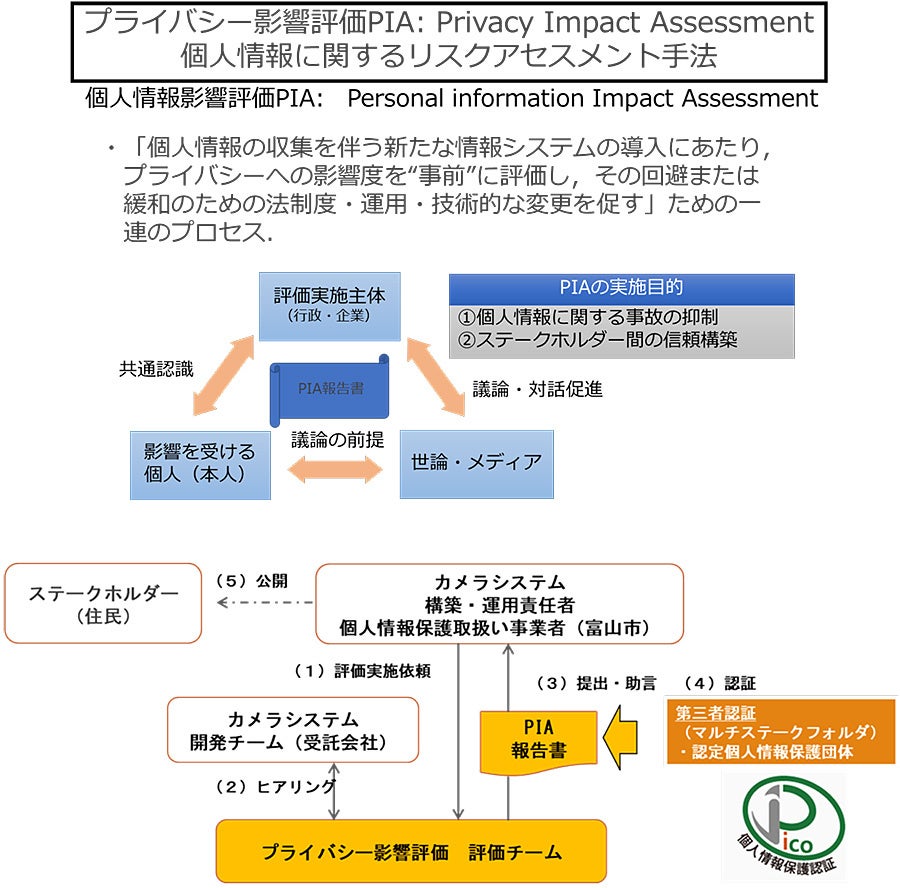 個人情報を取り扱う可能性がある業務において、初期段階でプライバシー影響評価し、リスク対策について報告書を作成することで、住民や通行人などのステークフォルダーからの問い合わせに対しての説明ができるものとなります。