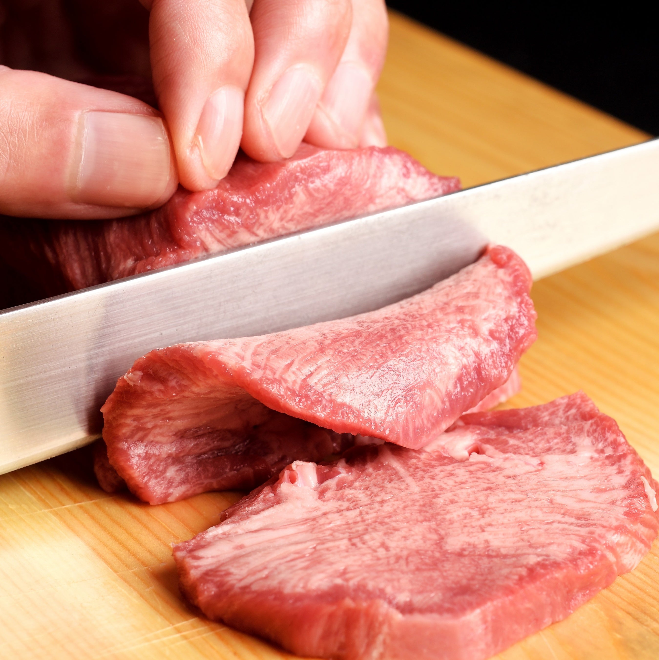 20mmの極厚で提供される当店自慢の「牛タン」は希少なタン芯を贅沢に使用しております。厚切りなのに「プリプリ」な食感をお愉しみください。さらに牛タンと合わせて、当店人気の「牛ハラミ」も厚切りでご提供いたします。