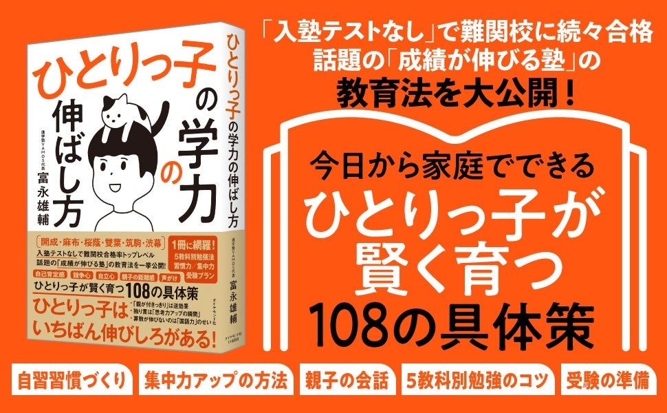 進学塾「VAMOS」代表 富永雄輔 著書「ひとりっ子の学力の伸ばし方」がダイヤモンド社より2022年8月23日に発売決定!