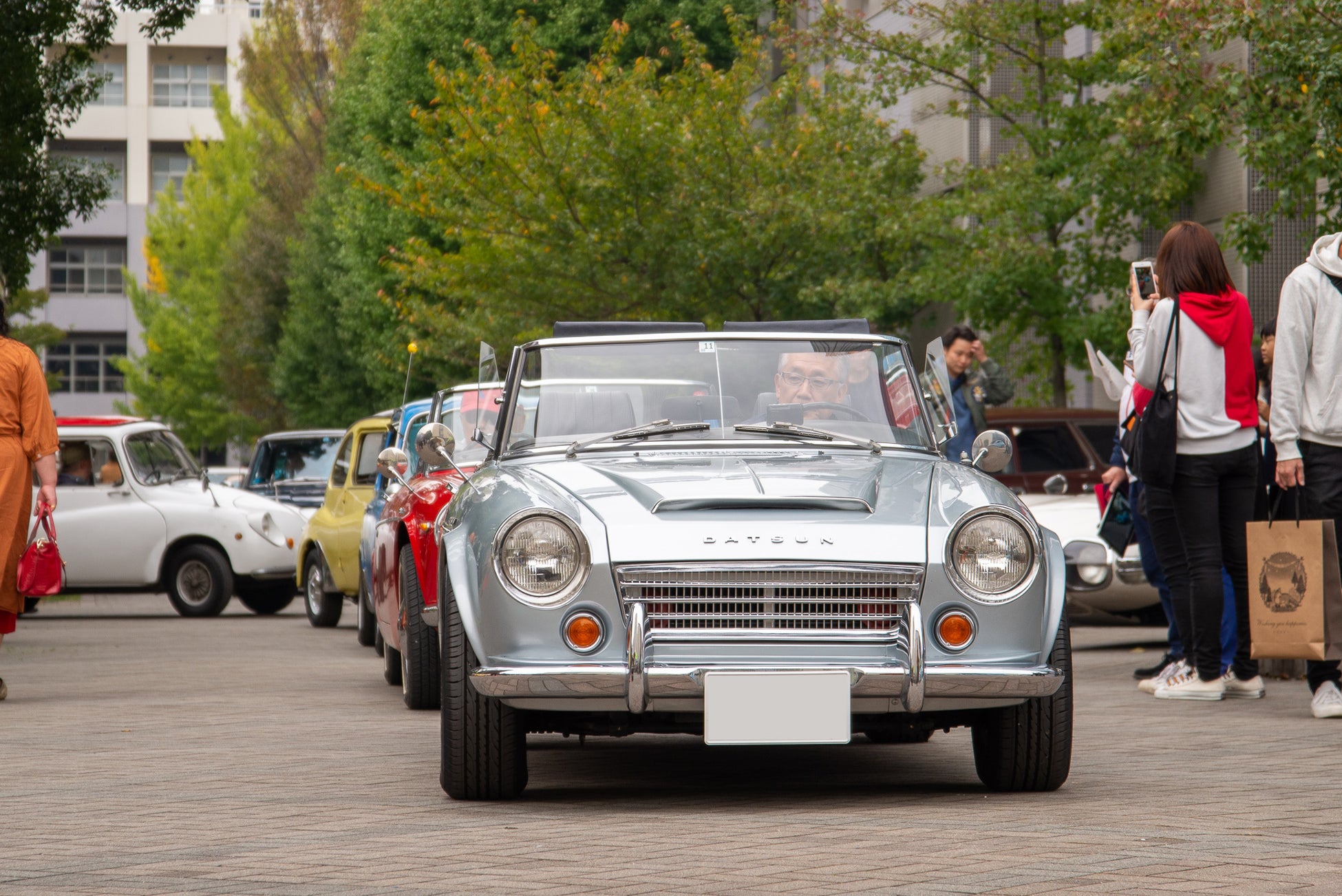 15時の閉会後は参加車両が群馬大学の正門から、桐生市の目抜き通りである本町通りを通って帰路につきます。桐生市民が小旗を振って参加車両を見送る温かい光景も、すっかりフェスティバルのフィナーレとして定着しました。